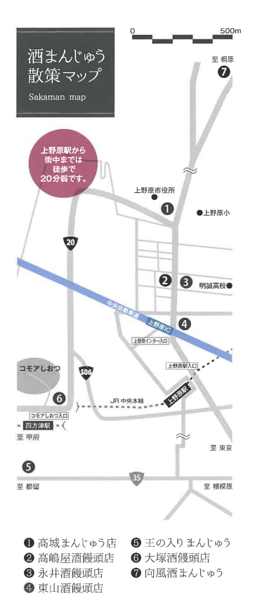 酒まんじゅうは、この市に集まった商人に愛され、味の良さはこの人達によって広く宣伝されました。数件ある酒まんじゅう屋は、先を争って買う客で長い列が出来たといいます。 明治、大正、昭和、平成と時が流れましたが、素朴な味はいつの時代にも好まれ、上野原名物として人気を博しています。